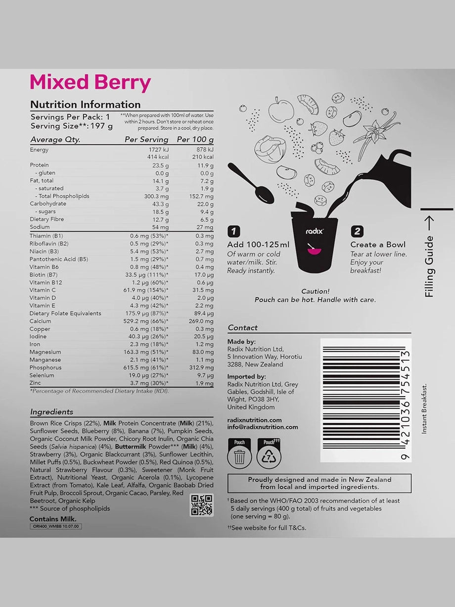 Radix Original Breakfasts are the perfect start to your day. Packed with the ideal balance of micro and macro-nutrients to keep you at your best, each serving is nutritionally balanced and made only with natural fruit, grains, seeds and superfoods.