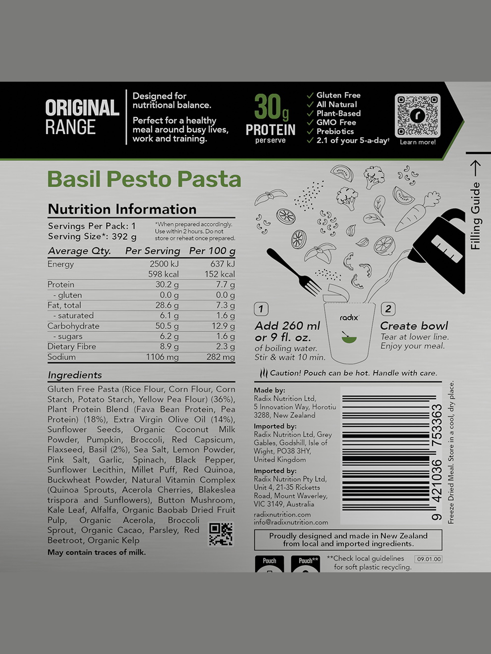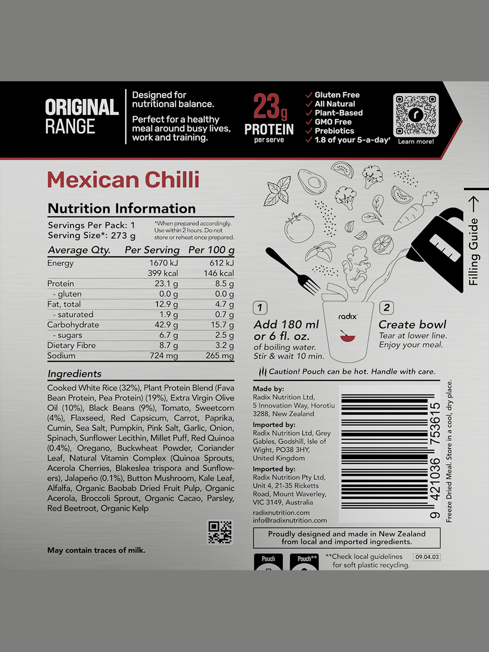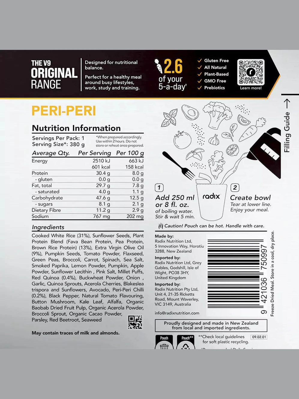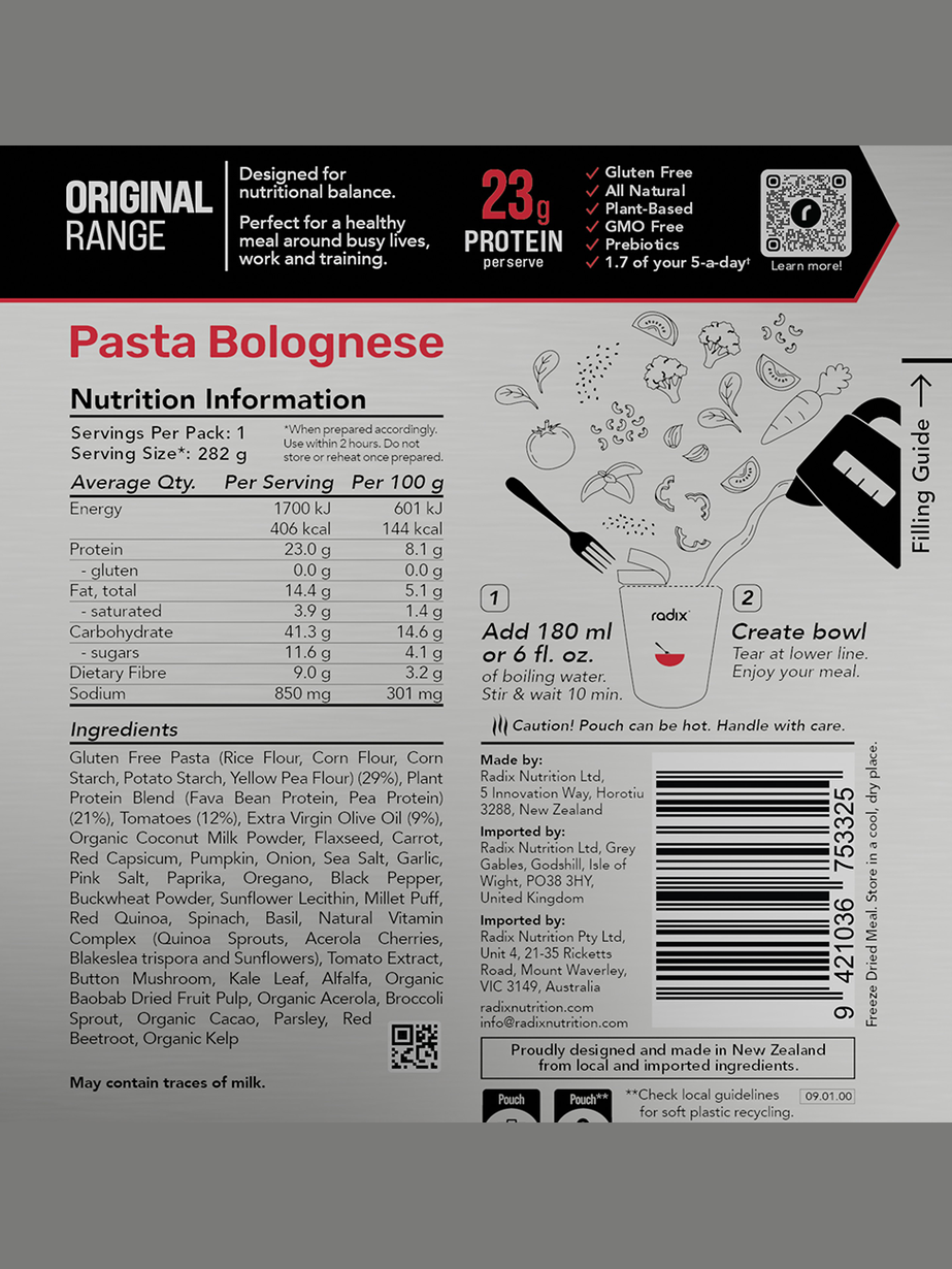 Your go anywhere go-to meal. Ready in minutes, bursting with flavour and perfectly balanced to refuel after a tough day in the mountains, gym or office. Radix's Original Meals are made with 100% natural plant-based ingredients and contain up to 2.5 of your five-a-day.