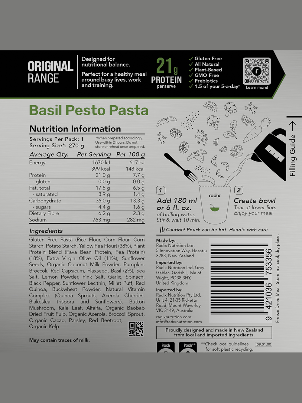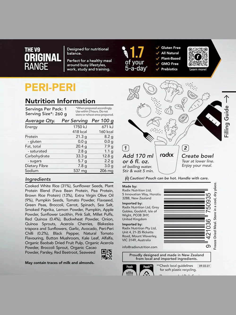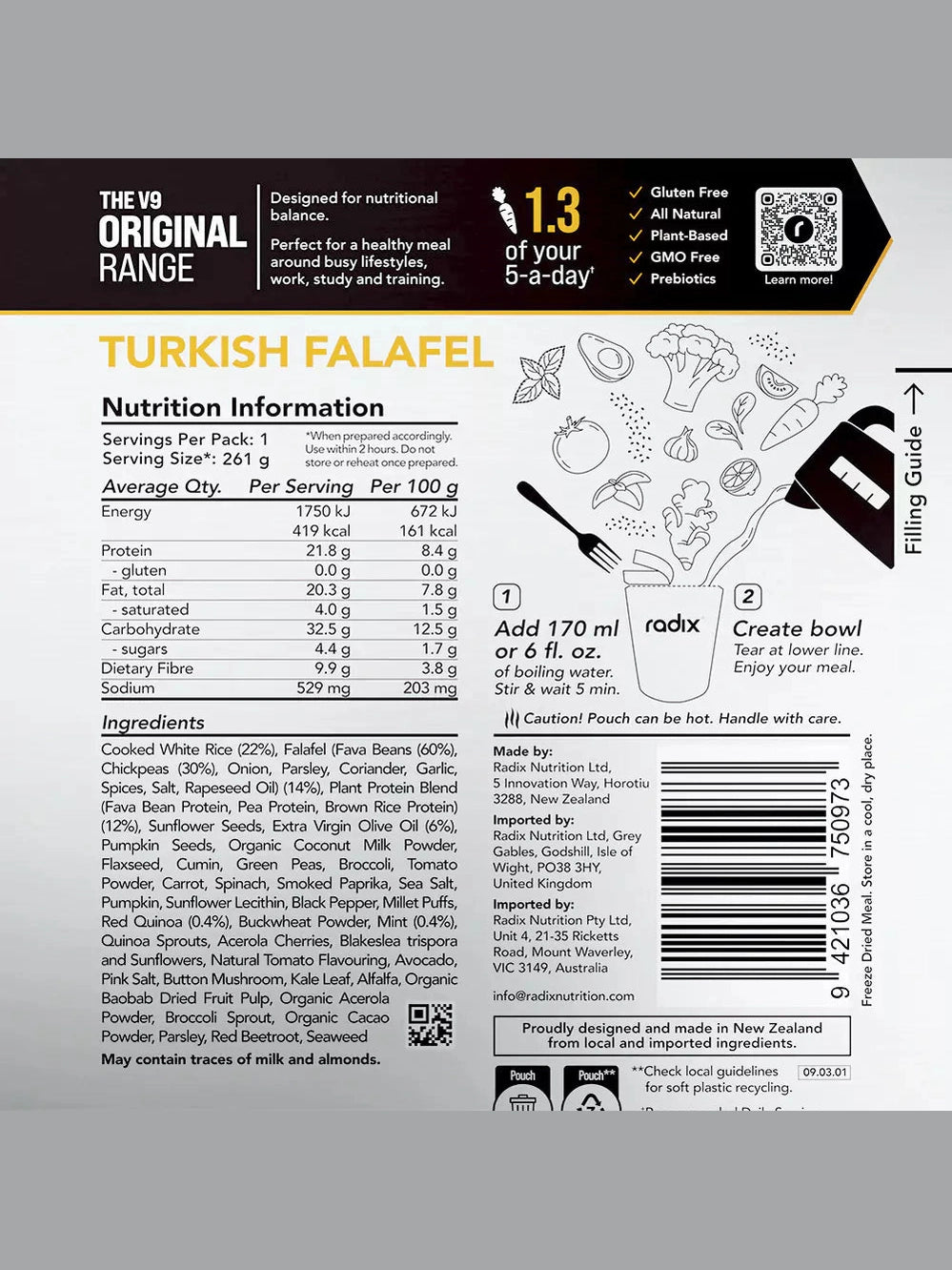 Your go anywhere go-to meal. Ready in minutes, bursting with flavour and perfectly balanced to refuel after a tough day in the mountains, gym or office. Radix's Original Meals are made with 100% natural plant-based ingredients and contain up to 2.5 of your five-a-day.